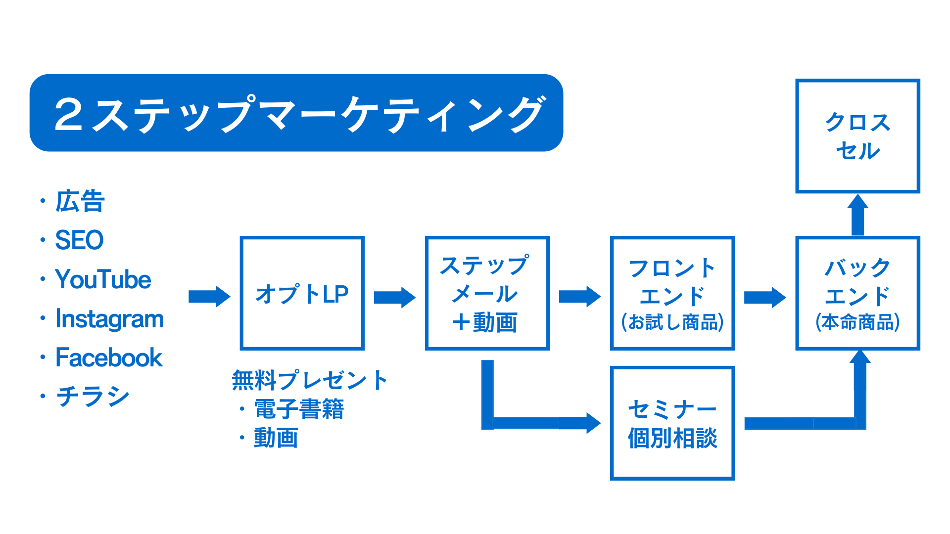 店舗型ビジネス、オンライン完結型ビジネス、その両方を組み合わせたハイブリッド型など、あなたのビジネスモデルに合わせて、最も効率的に利益を生み出すための最適な導線(ファネル)をオーダーメイドで設計・実行します。