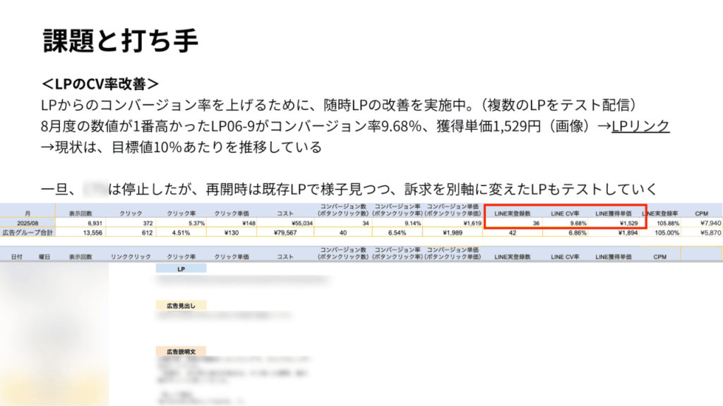 毎月の運用とテストを通じて、競合より選ばれる理由を明確にし、新規顧客の獲得コスト(CPA)を下げながら利益を積み上げていきます。